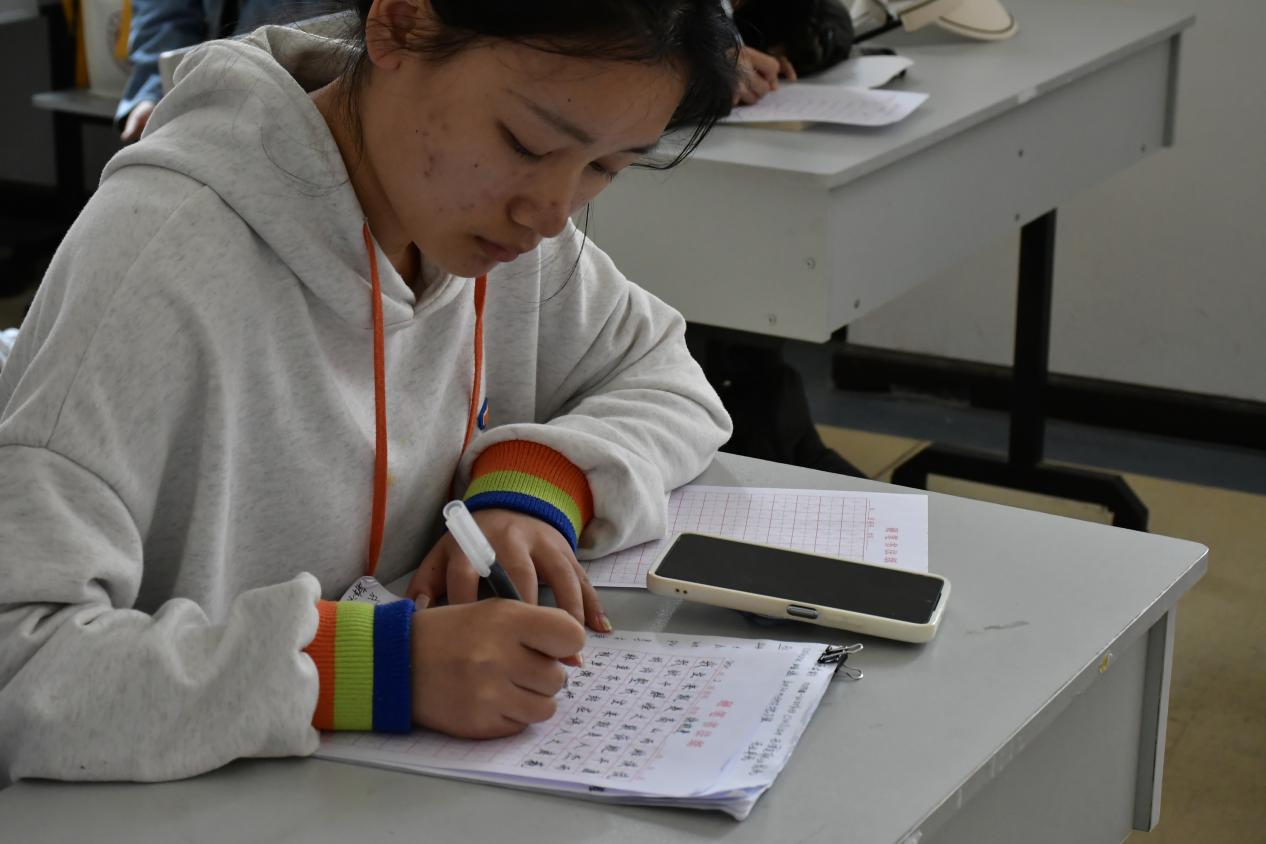 在文德楼206教室开展“诗说读写绎·建书香文院”系列活动之“挥青春靓笔·扬时代新声”书法比赛。