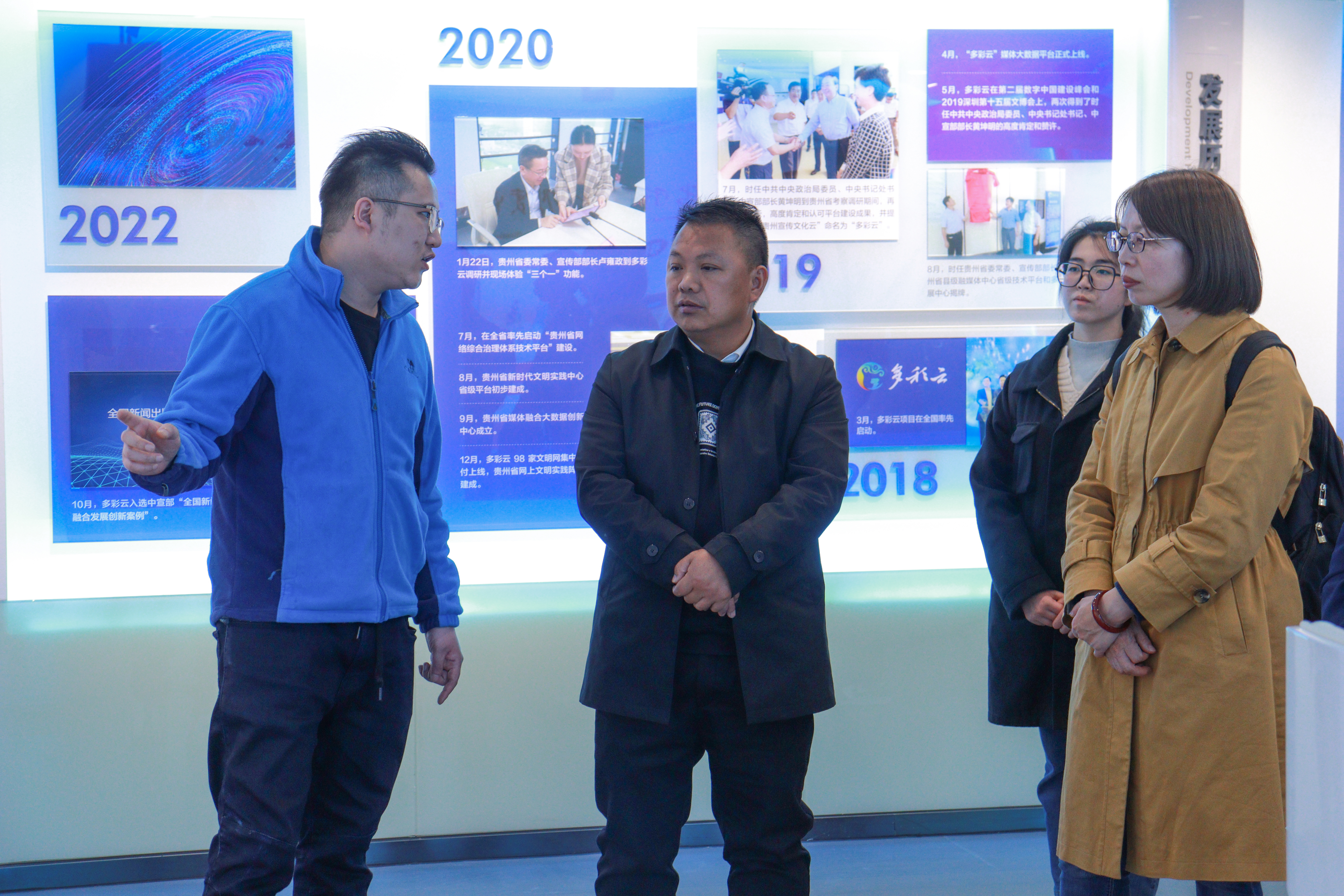 据悉,多彩贵州网有限责任公司是贵州省委、省政府为进一步加强全省互联网舆论阵地建设、做大做强互联网信息产业组建的省管国有大型文化传媒企业,多彩贵州网教科文卫中心为其下设机构。中心张超主任对杨经华一行表示热烈欢迎,对公司发展历程、业务版块等方面做了详细介绍,中心副主任张天明就开展学生实习实训、举办省级写作大赛等合作事项进行了交流。