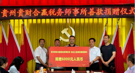 调研座谈会结束后,徐大佑代表学校向台江县南宫镇展啊捐赠办公用品、脱贫户三类户慰问品,并以赞助形式向展啊村捐赠助学金一万元,善款七千元。