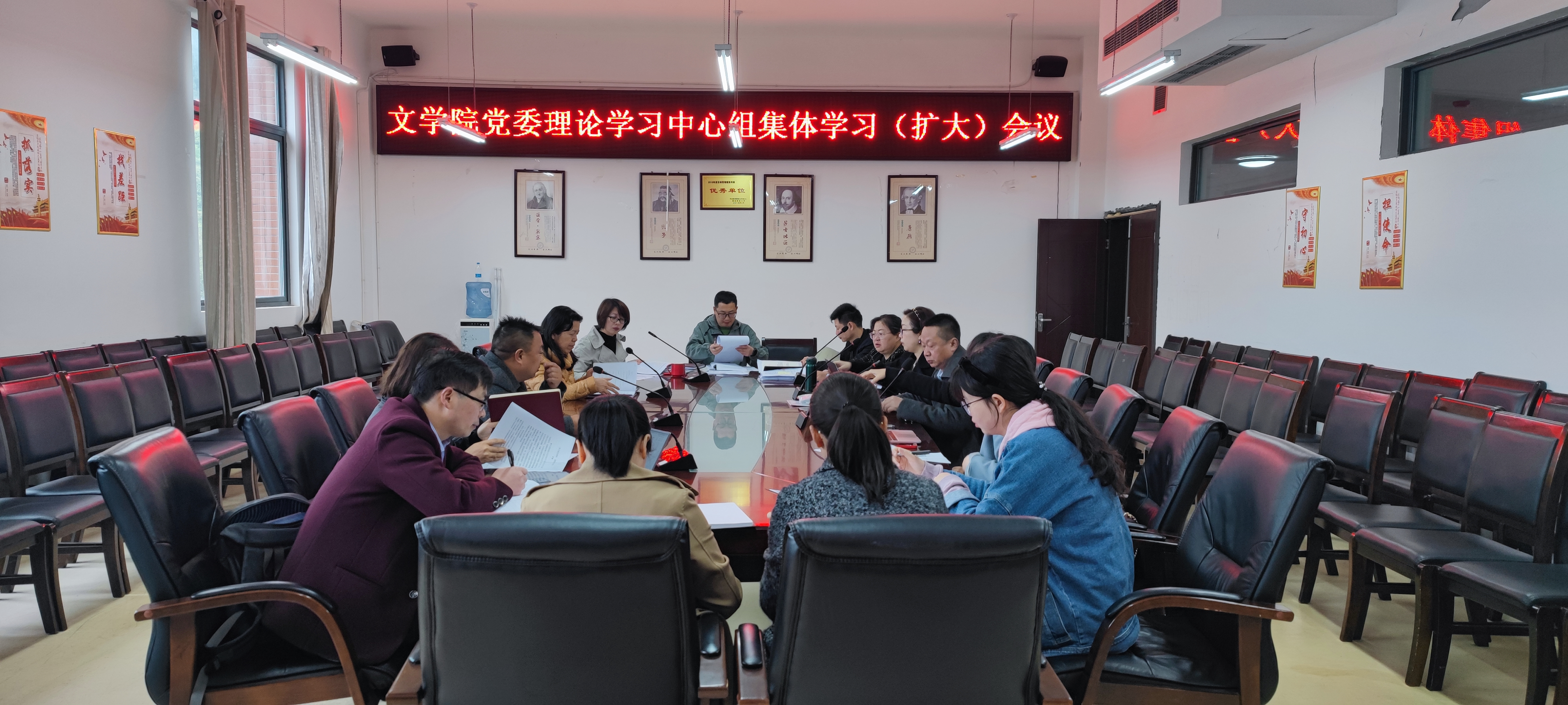 党委理论学习中心组2022年第四次集体学习(扩大)会议暨“习近平总书记重要讲话和全国两会精神”专题学习研讨会在文德楼318举行。院党委书记杨经华主持会议。院党委副书记文静,院党委委员张武桥、武晓丽出席,各党支部书记、各科室(系)负责人参加。