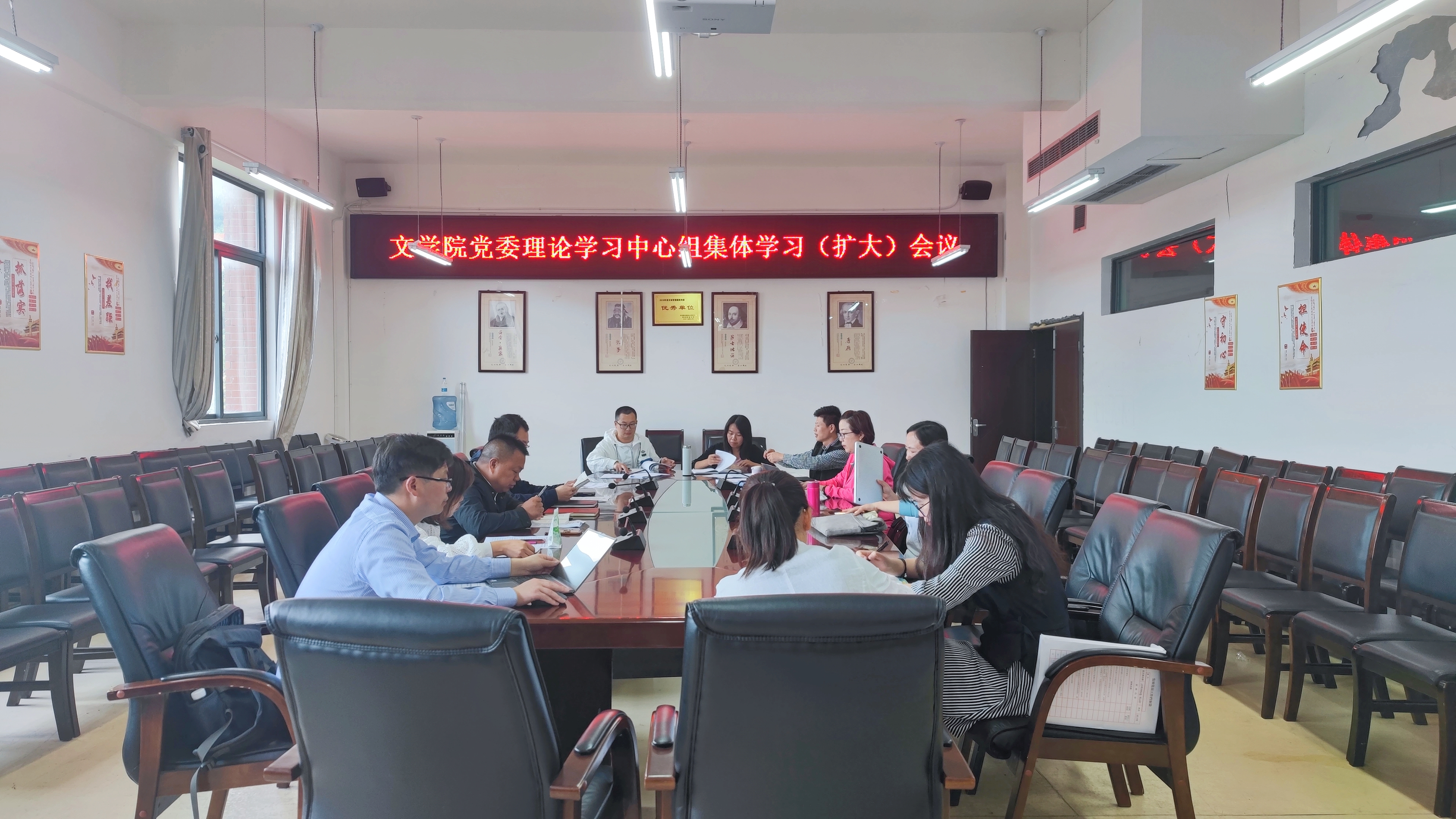 党委理论学习中心组2022年第六次集体学习(扩大)会议暨“高举伟大旗帜,谱写发展新章”专题学习研讨会在文德楼318举行。院党委书记杨经华主持会议。院党委副书记、纪委书记(兼)代泽华,院党委副书记文静,院党委委员张武桥、武晓丽出席,各党支部书记、各科室(系)负责人参加。