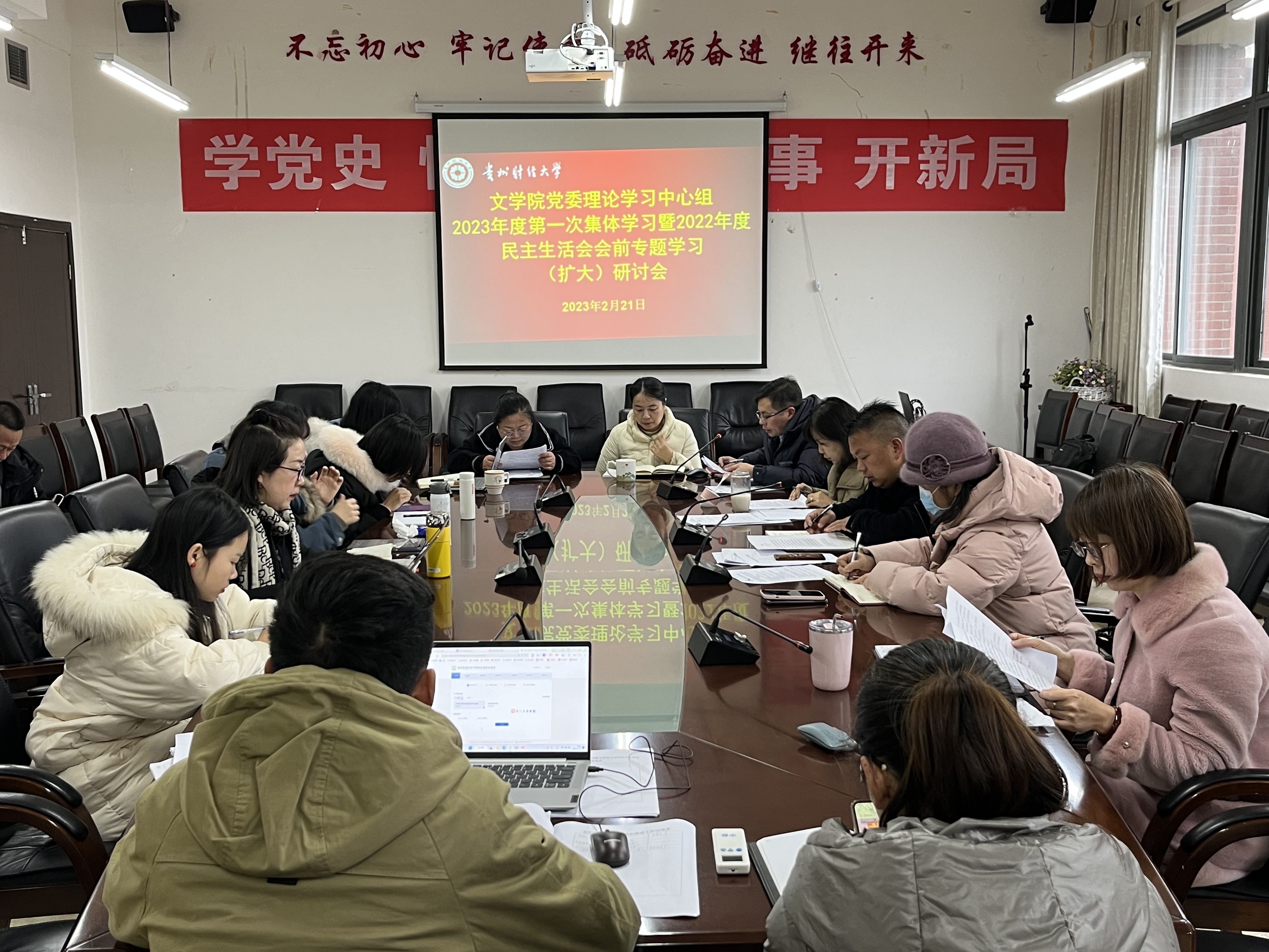 党委理论学习中心组组织召开2023年第一次集中学习暨2022年度党员领导干部民主生活会会前集中学习研讨会。院党委书记杨经华主持会议,院党委副书记、纪委书记(兼)代泽华,院党委副书记文静,副院长张武桥,院党委委员武晓丽出席,非党员院长顾雪松列席,各党支部书记、各科室(系)负责人参加。