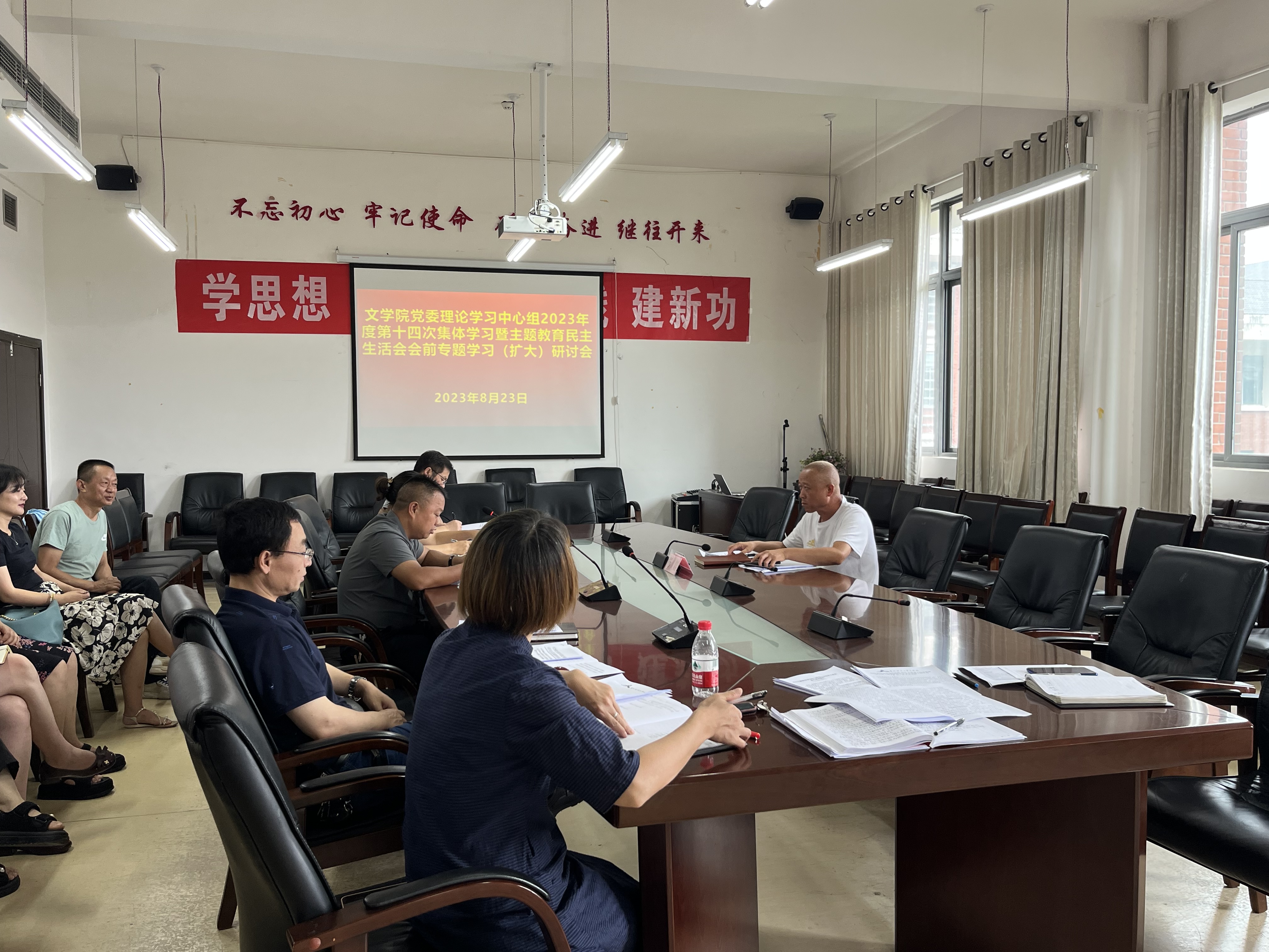 召开党委理论学习中心组2023年第十四次集体学习暨主题教育民主生活会会前专题学习研讨会,学校主题教育第四督导组组长杨燚到会指导。院党委书记杨经华主持会议,院党委副书记、纪委书记(兼)代泽华,院党委副书记文静,院党委委员、副院长张武桥,院党委委员武晓丽出席,各科室、系、支部负责人列席会议。