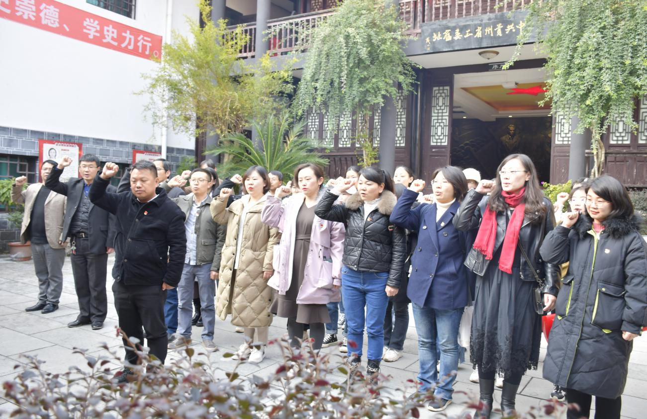 中文教工党支部与研究生党支部师生一行先在省工委旧址纪念馆内重温了入党誓词,随后进行参观学习。参观过程中,师生就纪念馆内的革命展品进行了深入的交流学习。