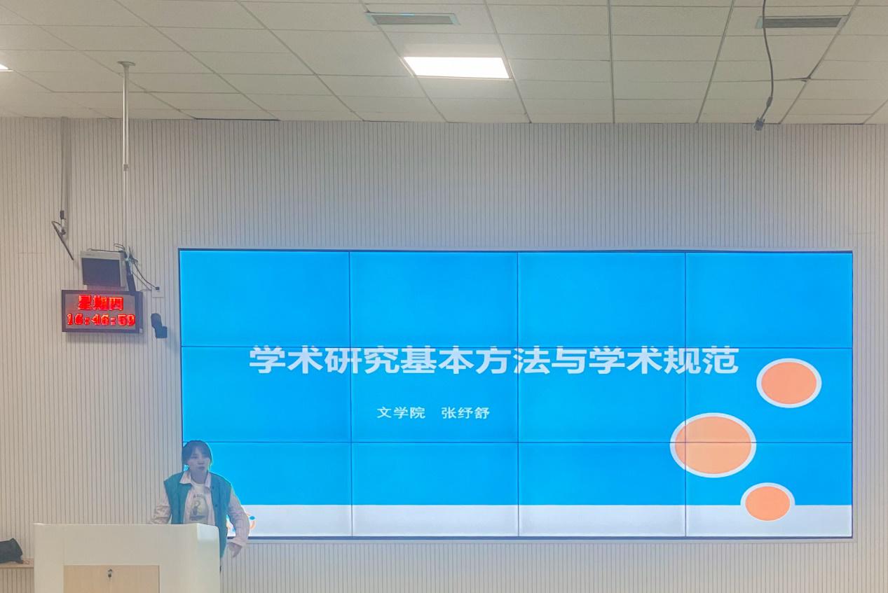 张纾舒的主题是《学术研究基本方法与学术规范》。首先,她向同学们讲述了学术研究基本方法——质化研究方法和量化研究方法,并对质化研究方法中的深度访谈、田野观察、焦点小组等和量化研究方法中的问卷分析和内容分析进行详细解释。此外,她还重点讲解了学术规范中的文献格式问题。
