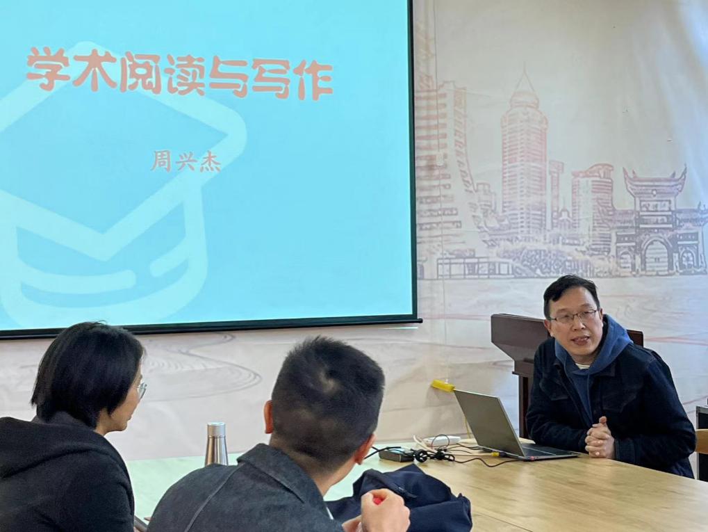 周兴杰老师结合自己的学术经验,以《学术阅读与写作》为主题,讨论了学术研究应具备的基本素质,提出要由问题意识带动阅读文本的选择,同时遵循“围点打援”的方法,结合专家的研究论文,反复阅读经典,实现理解的难点突破。