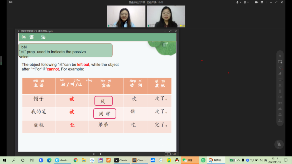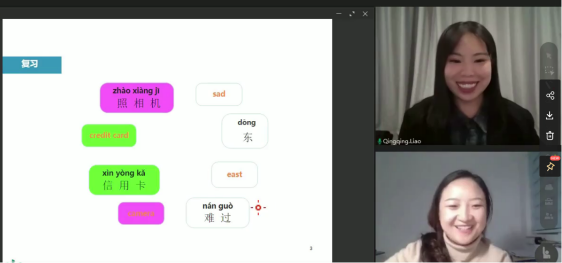 (文思思同学与留学生的实际网络课堂)