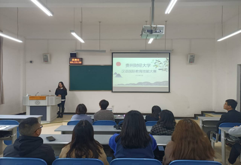 (邵正兰同学就如何提升国际汉语教师的素质和能力与各位师生共同展开交流)