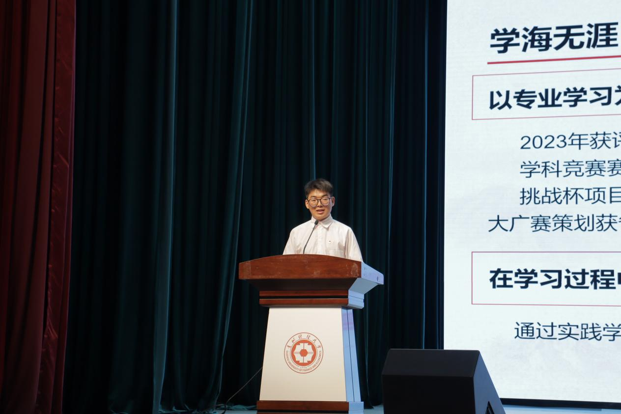优秀学生代表杨帆、徐桓奕、吴凯、蔡林卉分别上台发言,分享团支部风采、学习经验、成长感悟和对未来的展望,激励每一位青年学子刻苦学习、奋发图强、敢于担当。