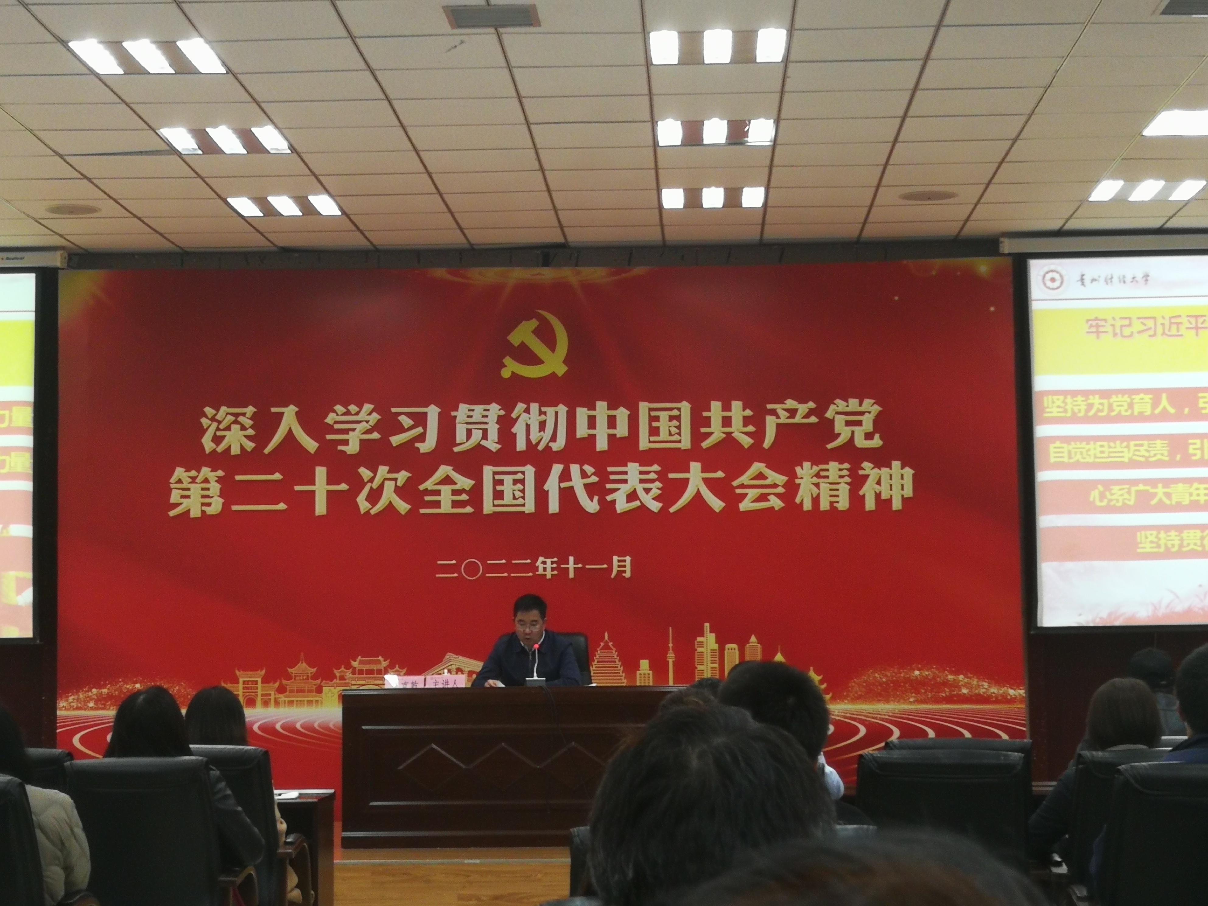 朱克乾从党的二十大召开的重大意义、习近平新时代中国特色社会主义思想的世界观和方法论、中国式现代化推进中华民族伟大复兴的使命和任务、以伟大自我革命引领伟大社会革命的重要要求、团结奋斗的时代要求、党章修正案精神、习近平总书记对青年的殷殷期望等方面进行了宣讲。朱克乾指出,学习贯彻党的二十大精神要紧密结合贵州脱贫攻坚和乡村振兴实际,牢记习近平总书记殷切嘱托,感恩奋进,深刻认识“两个确立”的极端重要性,衷心拥护“两个确立”,忠诚践行“两个维护”,更加自觉在思想上政治上行动上同以习近平同志为核心的党中央保持高度一致。