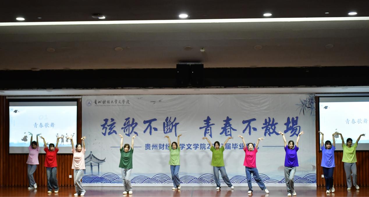 学生们献上精彩的暖场演出《歌舞青春》,赢得现场观众的阵阵掌声与欢呼。随后播放学院领导、老师、学弟学妹们的毕业祝福视频。