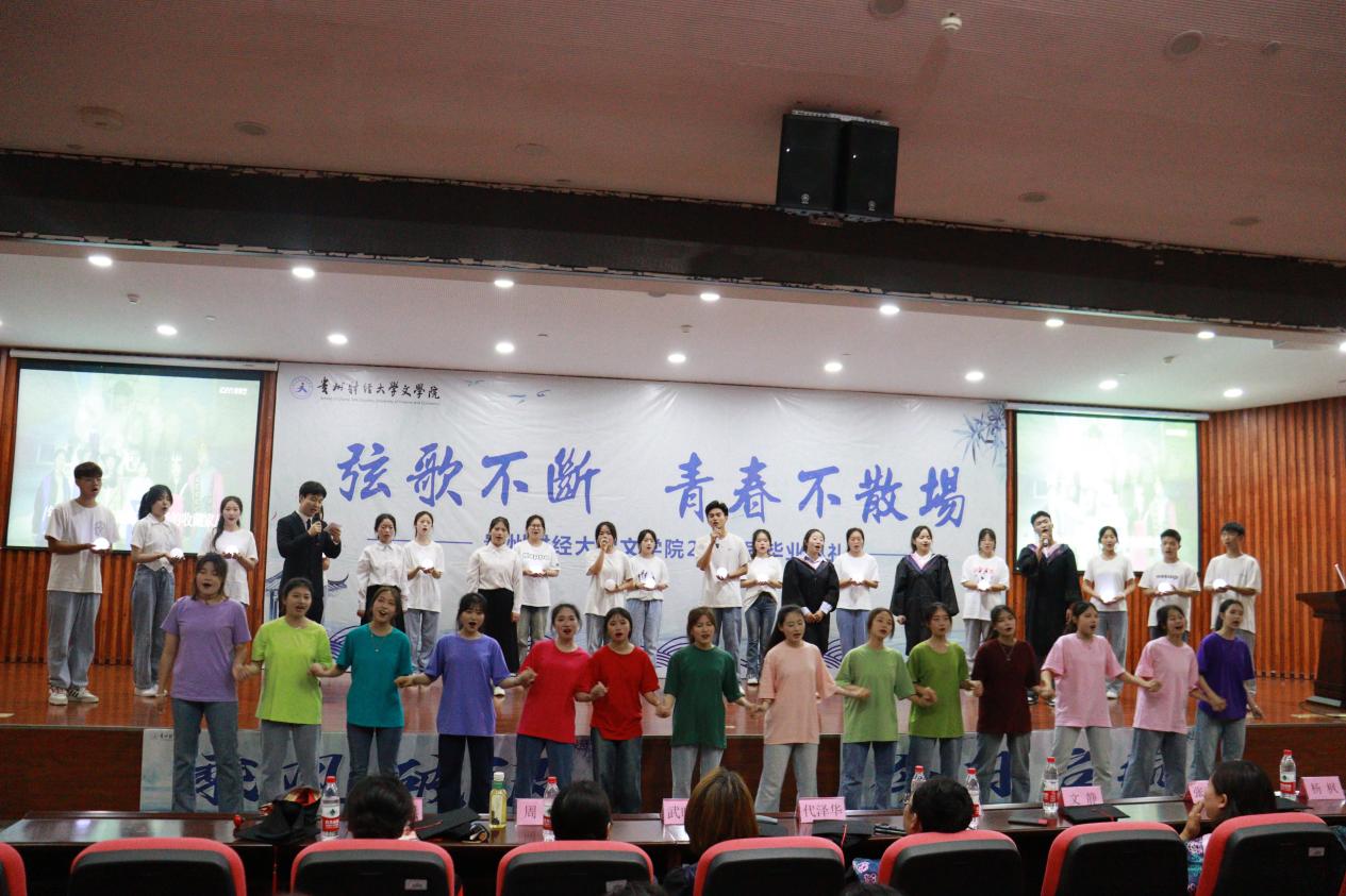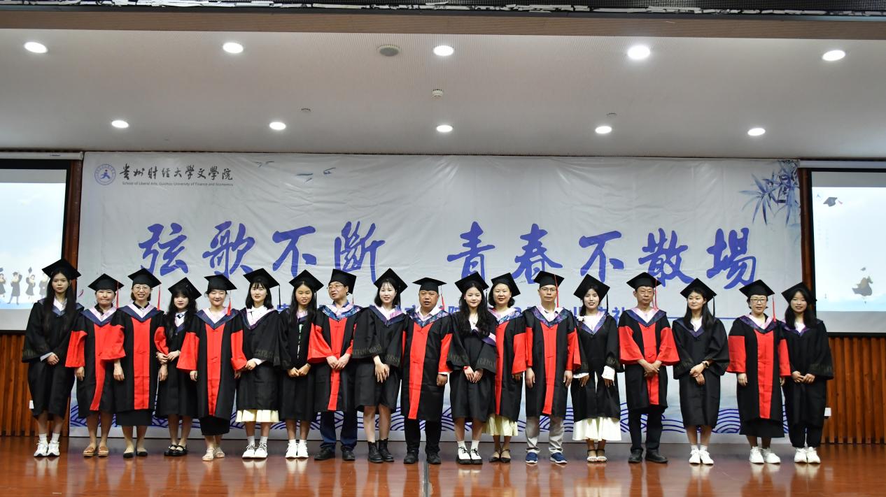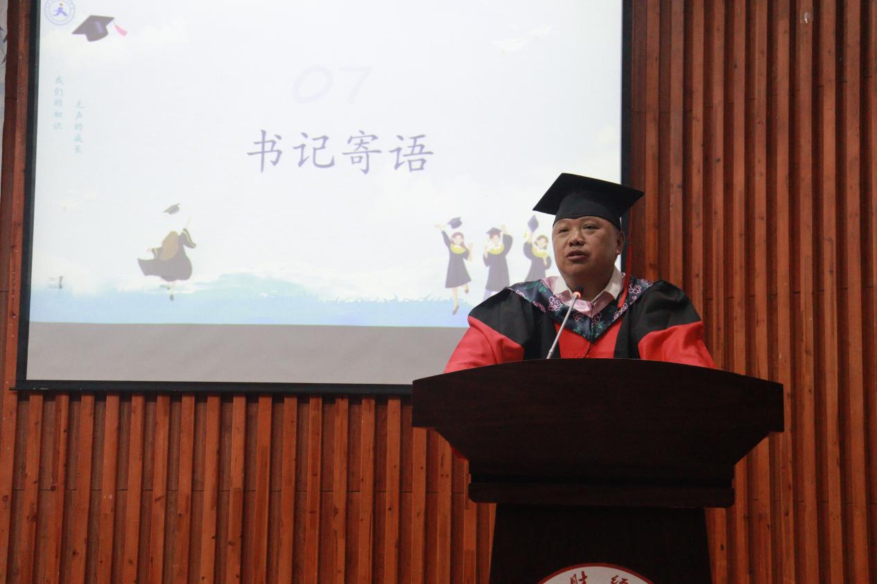 拨穗仪式环节,学院领导与专任老师上台为毕业生逐一拔穗并合影留念。最后,杨经华书记讲话,表达了对全体毕业生的祝贺,并对同学们提出三点希望:一、永远跟随自己的初心,做一个真实的自我;二、永远跟随自己的梦想,做一个坚韧的自我;三、永远坚守自己的使命,做一个简单的自我。祝愿同学们前程似锦,人生如诗、如画、如梦亦如歌。