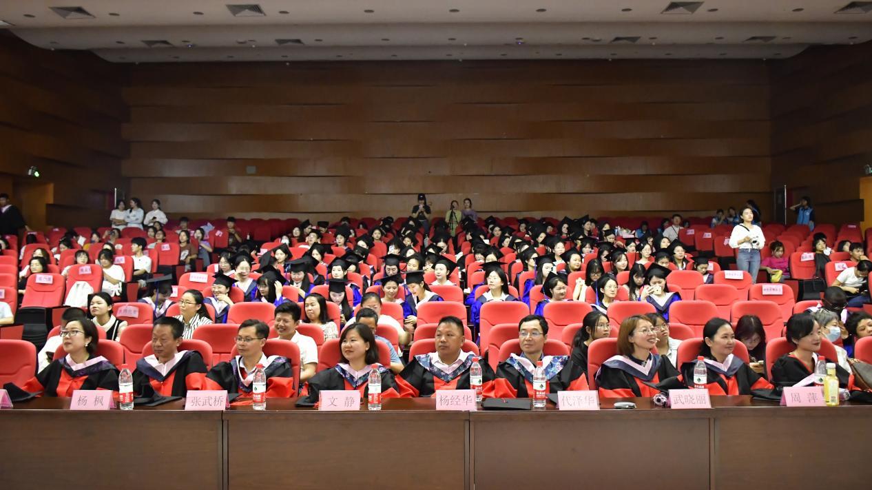 于图书馆报告厅隆重举行“弦歌不断·青春不散场”2023届毕业典礼。院党委书记杨经华,党委副书记、纪委书记(兼)代泽华,党委副书记文静,副院长张武桥,党委委员武晓丽及各专业负责人、教师代表、行政人员、辅导员出席本次活动。