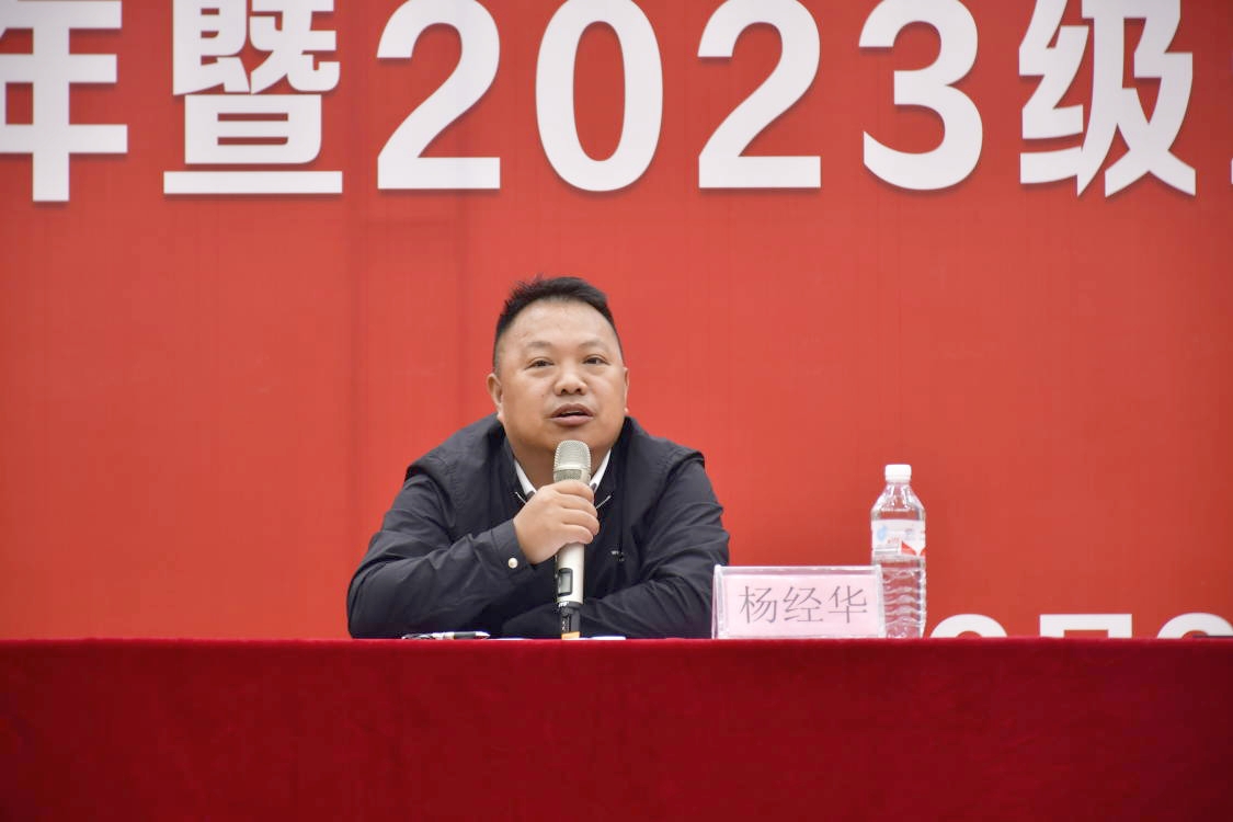 大会伊始,杨经华向2023级新生表示热烈地欢迎,希望同学们重新思考自己的定位,做一个有情怀、有志气、有骨气、有底气的色色动漫