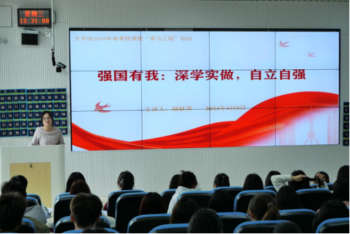 2024年春季团课暨“青马工程”培训在进学楼103教室举行。本次培训由院党委书记杨经华、院党委副书记文静、本科生第三党支部书记鲁笑倩、院团委负责人杨群、优秀学生代表杨秋萍进行授课,入团、入党申请人,各团支部团干,学生组织骨干,优秀青年代表共计117名学生参加。