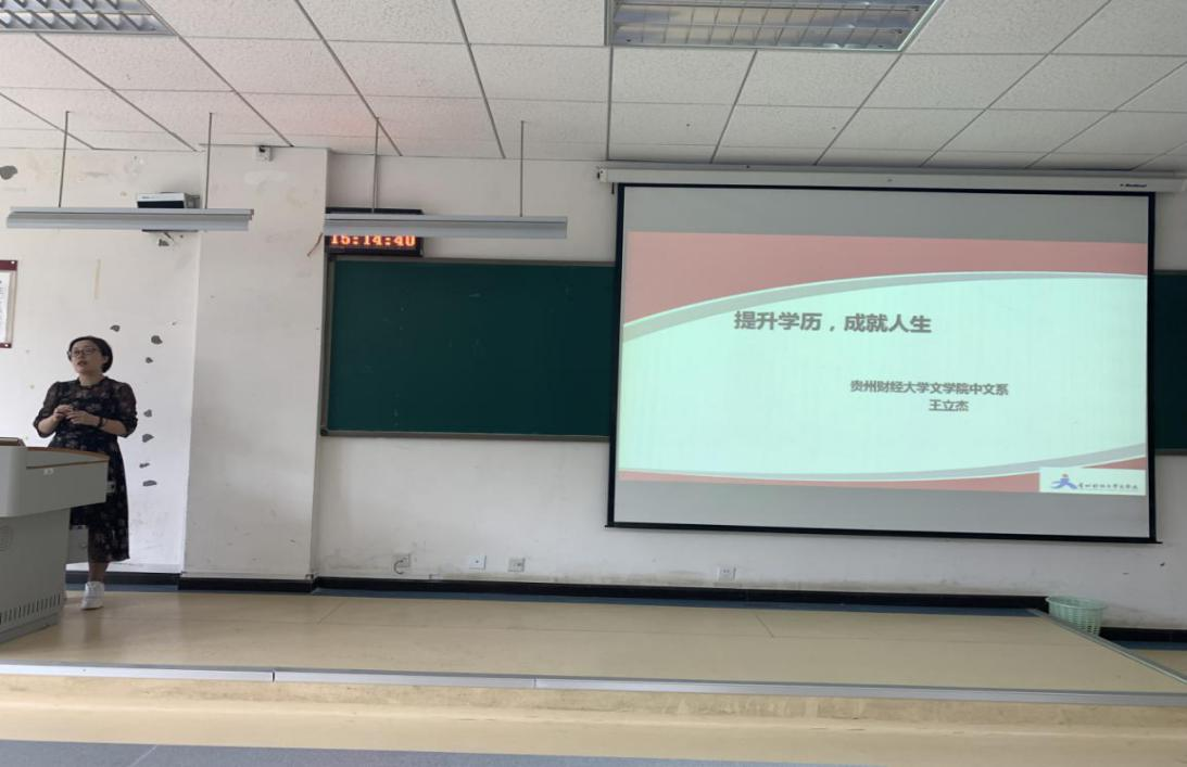 王立杰、武晓丽两位博士则作为中文系代表分别结合中国语言文学硕士点和汉语国际教育专业硕士点的基本情况向学生分享了各自对专业的理解以及对学生继续深造的希望。王立杰博士表示自己无论工作再忙都会坚持每天阅览一本新书,所谓求学悟道,重在点点滴滴的积累以及持之以恒的钻研。她还强调中文系学生要在博览群书的同时积极实践,将纸上得来的知识力争躬行。