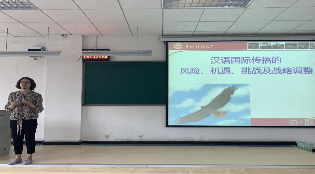 武晓丽博士则以“汉语国际传播的风险、机遇、挑战及战略调整”为题向学生介绍了汉语国际教育专业的现状并展望了专业未来,提出随着国家国际影响力的不断扩大,对汉语国际传播人才的需求也会不断增大,希望学生能够加入汉语国际教育人才专业队伍,共同为汉语国际传播事业添砖加瓦。