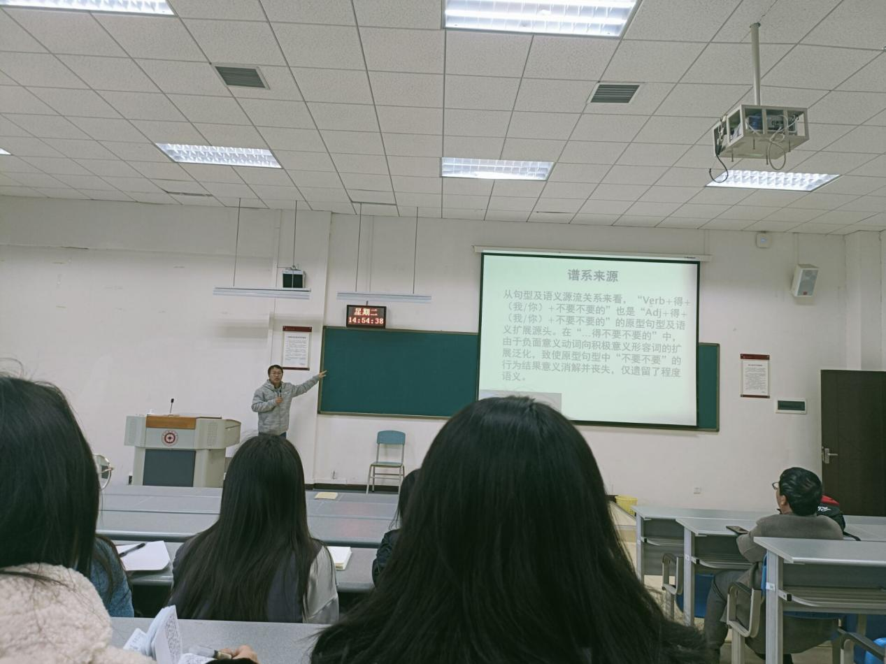 梁吉平老师以“关于生活中的常用语言”为引,再从褒贬两个方面展示同一语言在不同生活情境中的意义,结合理论与生活实际,讲解“生活中的语言学”存在的形式及意义。